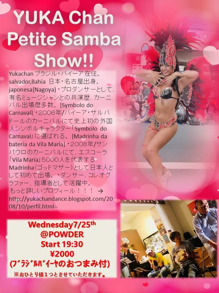 名古屋市日比野駅すぐ Powder さんで 19:00- ライブ + プチsamba show